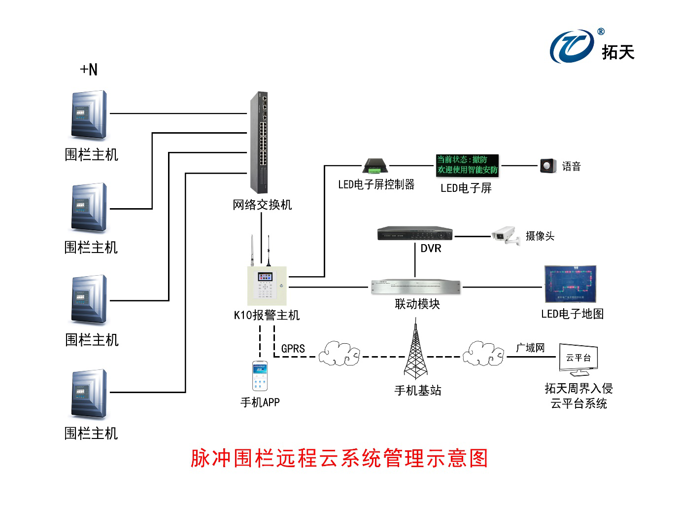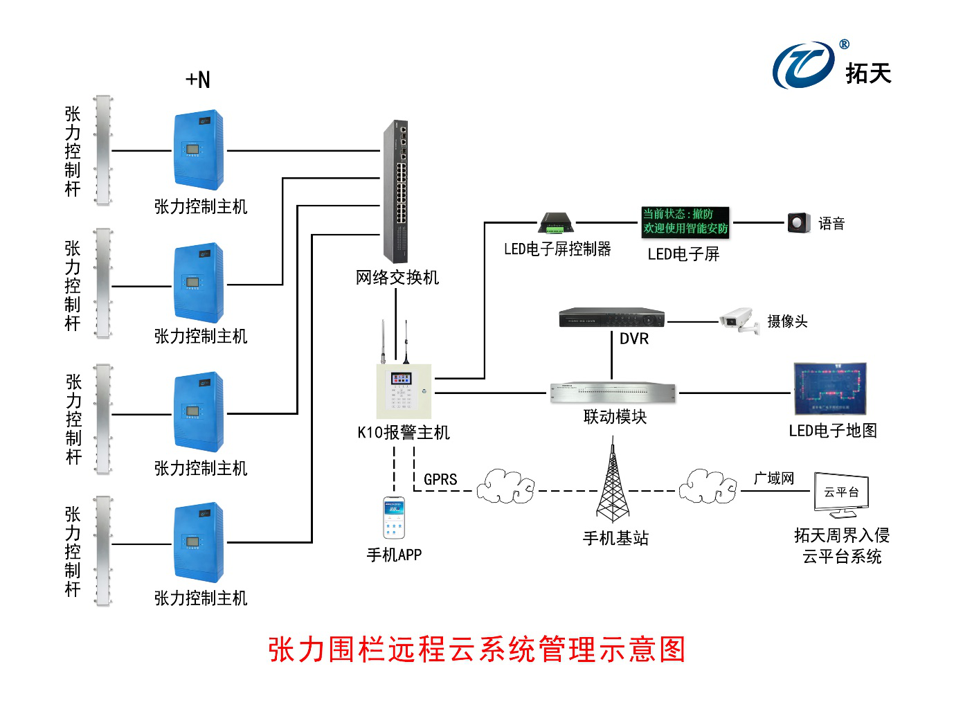 全面支持接入脈沖電子圍欄、張力電子圍欄、泄漏電纜、振動光纖、地址碼等周界報警設(shè)備,并實現(xiàn)集中統(tǒng)一管理。云平臺軟件可以連入多達幾百個GPRS報警主機