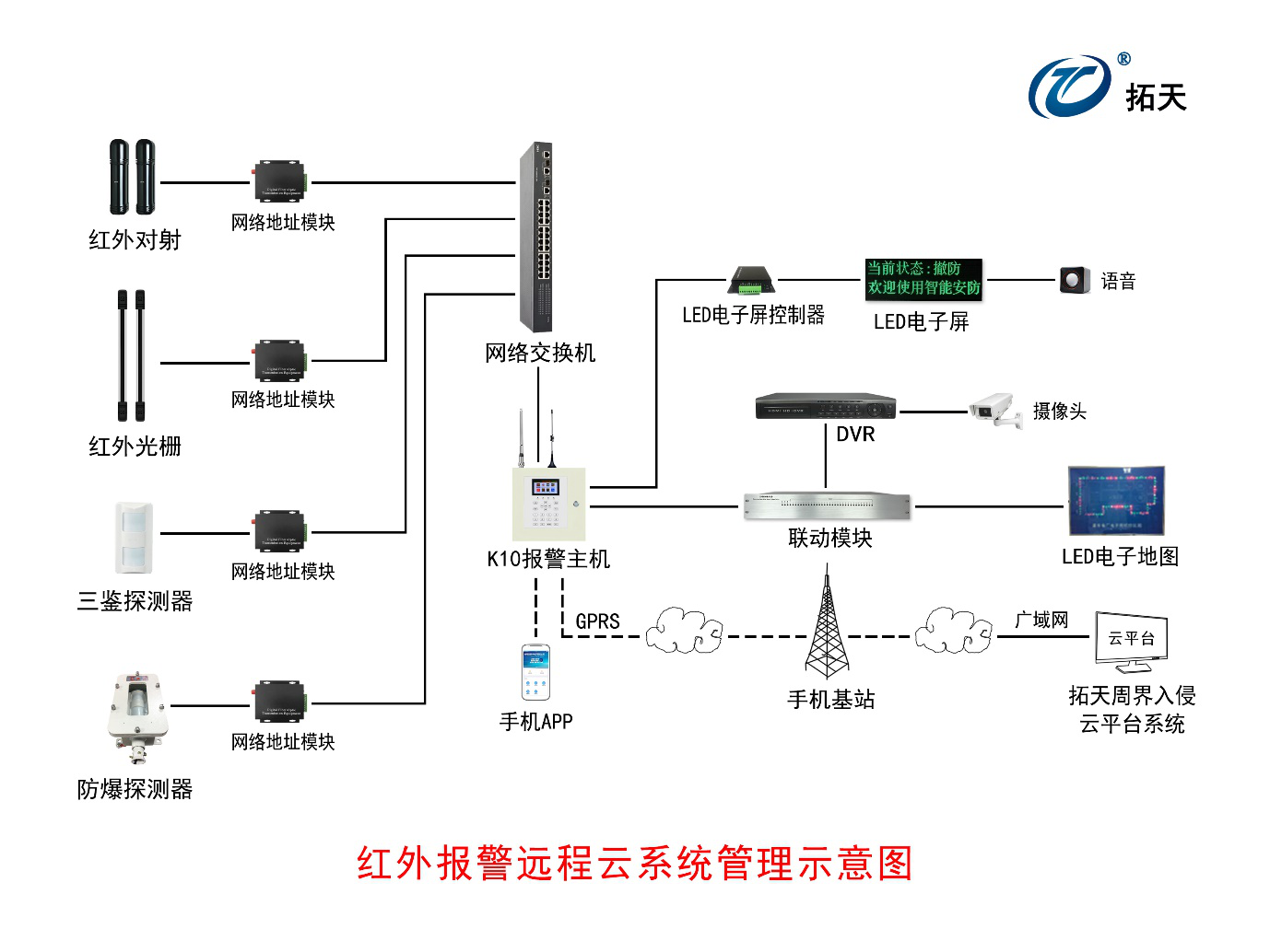 可與周界報警設(shè)備 GPRS報警主機通過手機卡連廣域網(wǎng)云服務(wù)器